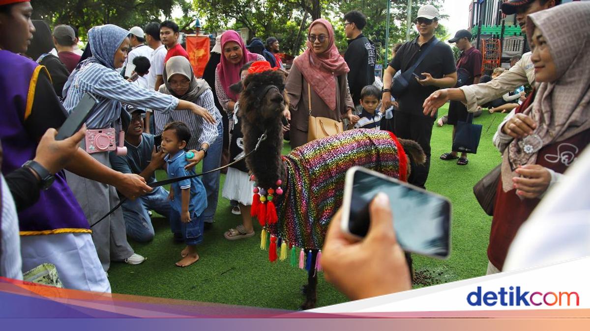 Pengunjung memadati area pertunjukan Bagi Merasakan parade hewan Pada libur Idulfitri.