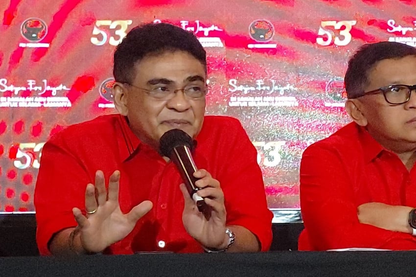 Ketua DPP PDIP Andreas Hugo Paraeira Memberi keterangan usai pelaksanaan Rakernas I PDIP Hingga Ancol, Jakarta Utara, Senin (12/1/2026). Foto: Felldy Utama